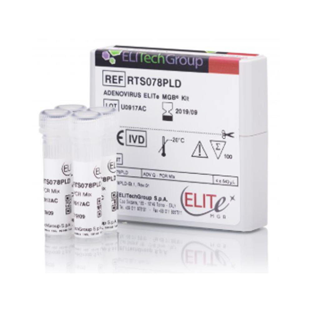 Adenovirus Los adenovirus son causas importantes de infecciones tanto en individuos inmunocompetentes como inmunocomprometidos, y las principales causas de morbilidad y mortalidad, especialmente en niños. La reactivación del adenovirus latente, o la transmisión durante el trasplante, puede ser responsable de la infección diseminada y la pérdida del injerto. «ADENOVIRUS ELITe MGB® Kit» es un ensayo cualitativo y cuantitativo de amplificación de ácidos nucleicos para la detección y la cuantificación de ADN de adenovirus humano (ADV), de los genotipos A, B, C, D, E, F y G (inclusive 57 serotipos), en muestras de ADN extraídas de sangre recogida en EDTA, plasma recogido en EDTA.