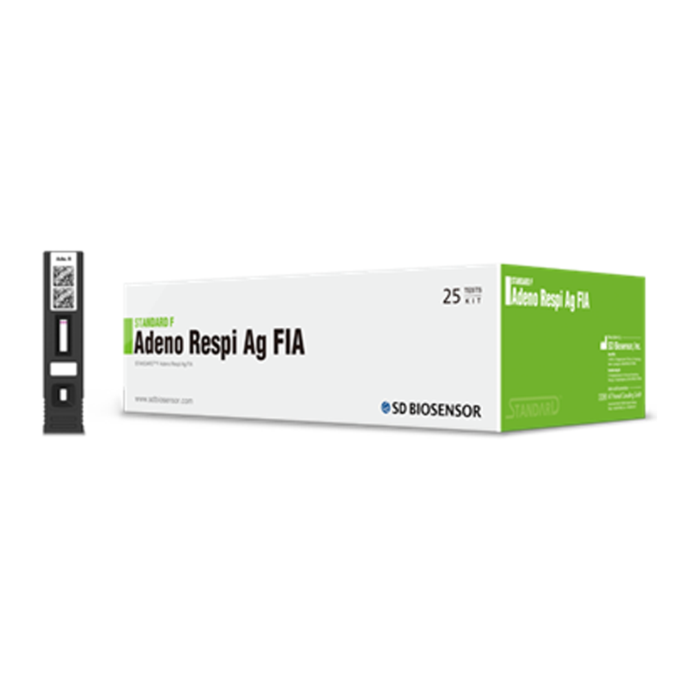 El producto STANDARD F Adeno Respi Ag FIA es el inmunoensayo fluorescente para detectar la infección por adenovirus en humanos mediante el uso de torunda nasal y nasofaríngea, identifi cando la existencia