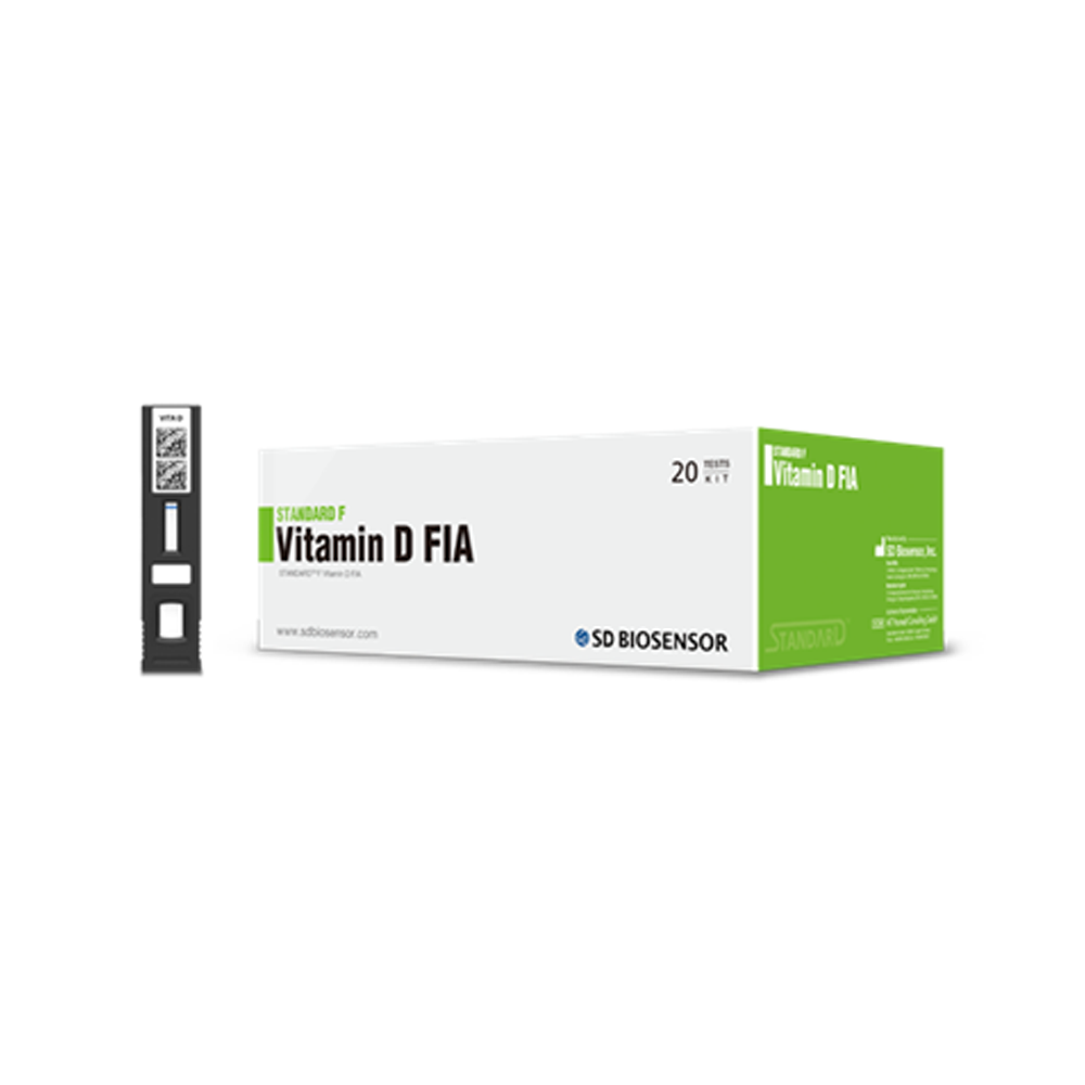El producto STANDARD F Vitamin D FIA es un método de diagnóstico in vitro para la medición cuantitativa de vitamina D 25-Hidroxi total (Vitamina D 25-OH) en suero humano. Este producto entrega un resultado de prueba de diagnóstico preliminar y puede emplearse para el control de deficiencia de vitamina D.