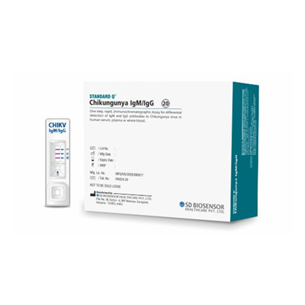 la Prueba STANDARD Q Chikungunya IgM/IgG proporciona un sistema significativamente rápido y fácil para identificar la infección por Chikungunya y permite el diagnóstico definitivo de apoyo de Chikungunya. La STANDARD Q Chikungunya IgM/IgG Test es una prueba inmunocromatográfica para la detección de anticuerpos IgM/IgG contra el virus Chikungunya en muestra humanas de suero, plasma o sangre entera. Este kit de prueba es solo para uso in vitro.